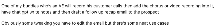 With the help of AI, some sales reps are eliminating this headache or at least getting a head start. This is definitely a used case we can get behind. 🫡