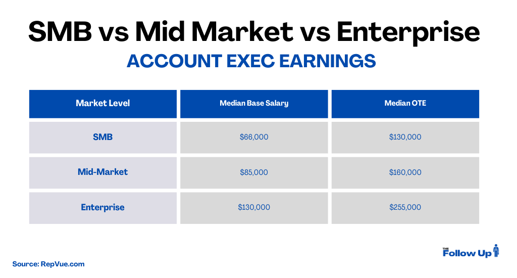 Bigger deals = more money. Enterprise deals are more valuable to companies, they’re willing to pay up for reps who can sell them.