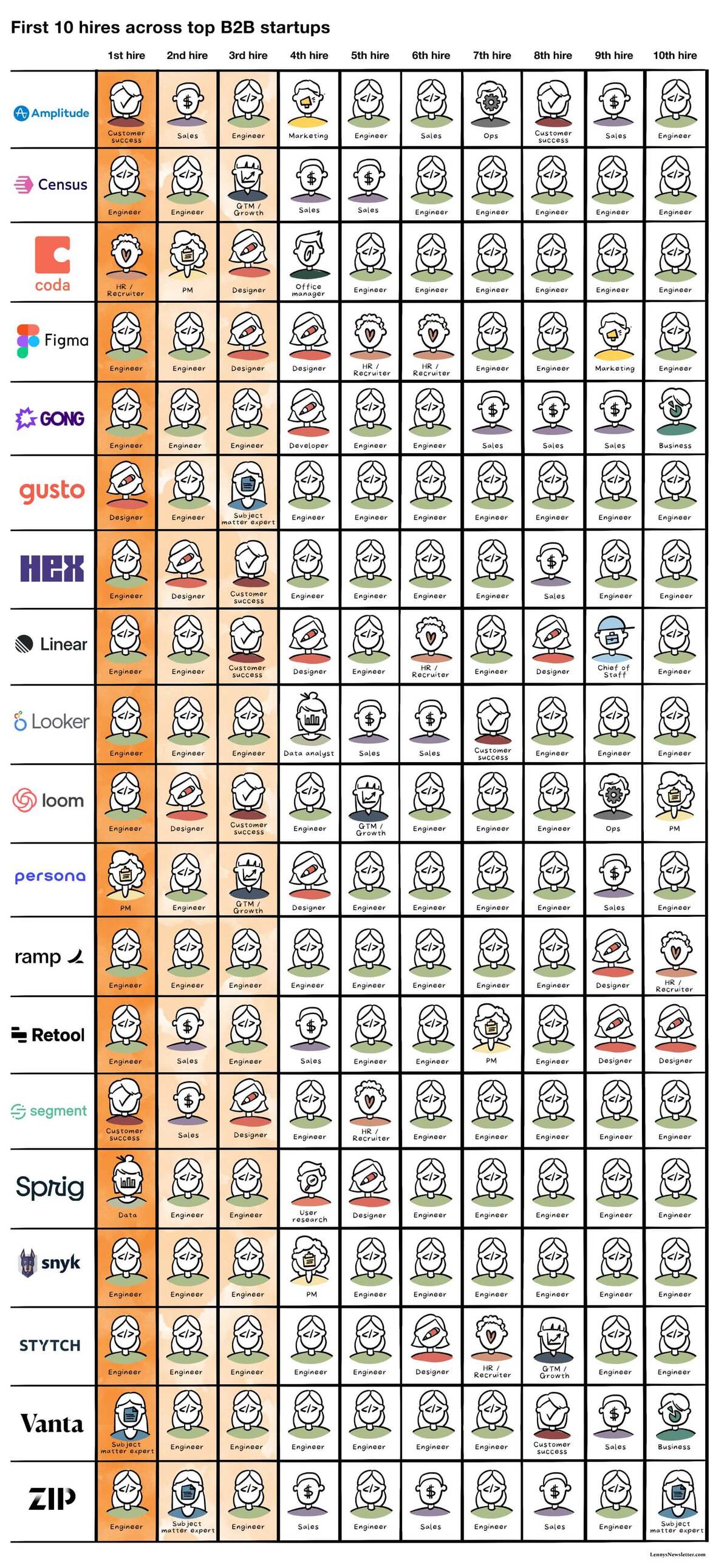 Sales is among the first ten hires in 10 of these 19 Top B2B startups
