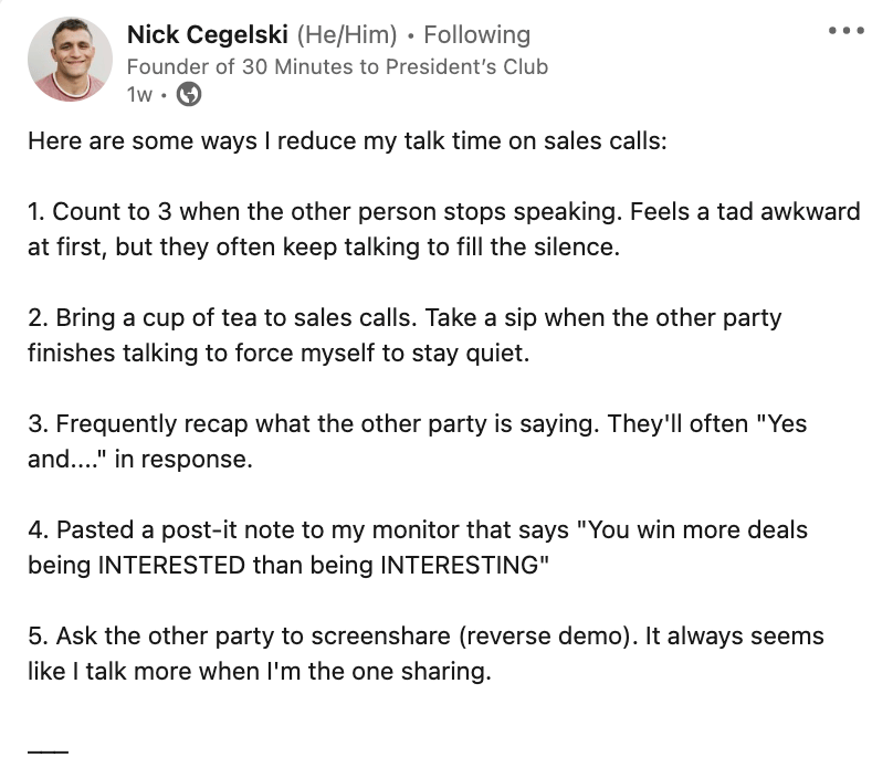 Checking in on our LinkedIn Influencers: Stop talking so much on cold calls!
